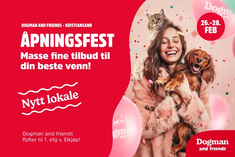 Dogman and friends har flyttet til 1. etg rett ved Elkjøp og gjenåpner torsdag 26. februar! Goodiebags, tilbud og fordeler til alle Club-Dogman medlemmer.